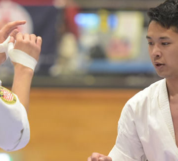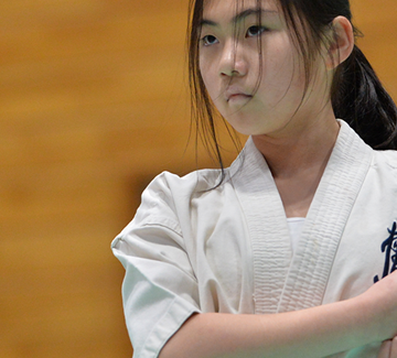 極真空手による青少年教育「礼節・心を鍛える」ことを重視します。
